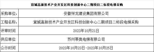 宣城高新技術(shù)產(chǎn)業(yè)開發(fā)區(qū)科技創(chuàng)新中心二期項目二標段電梯采購結(jié)果公示